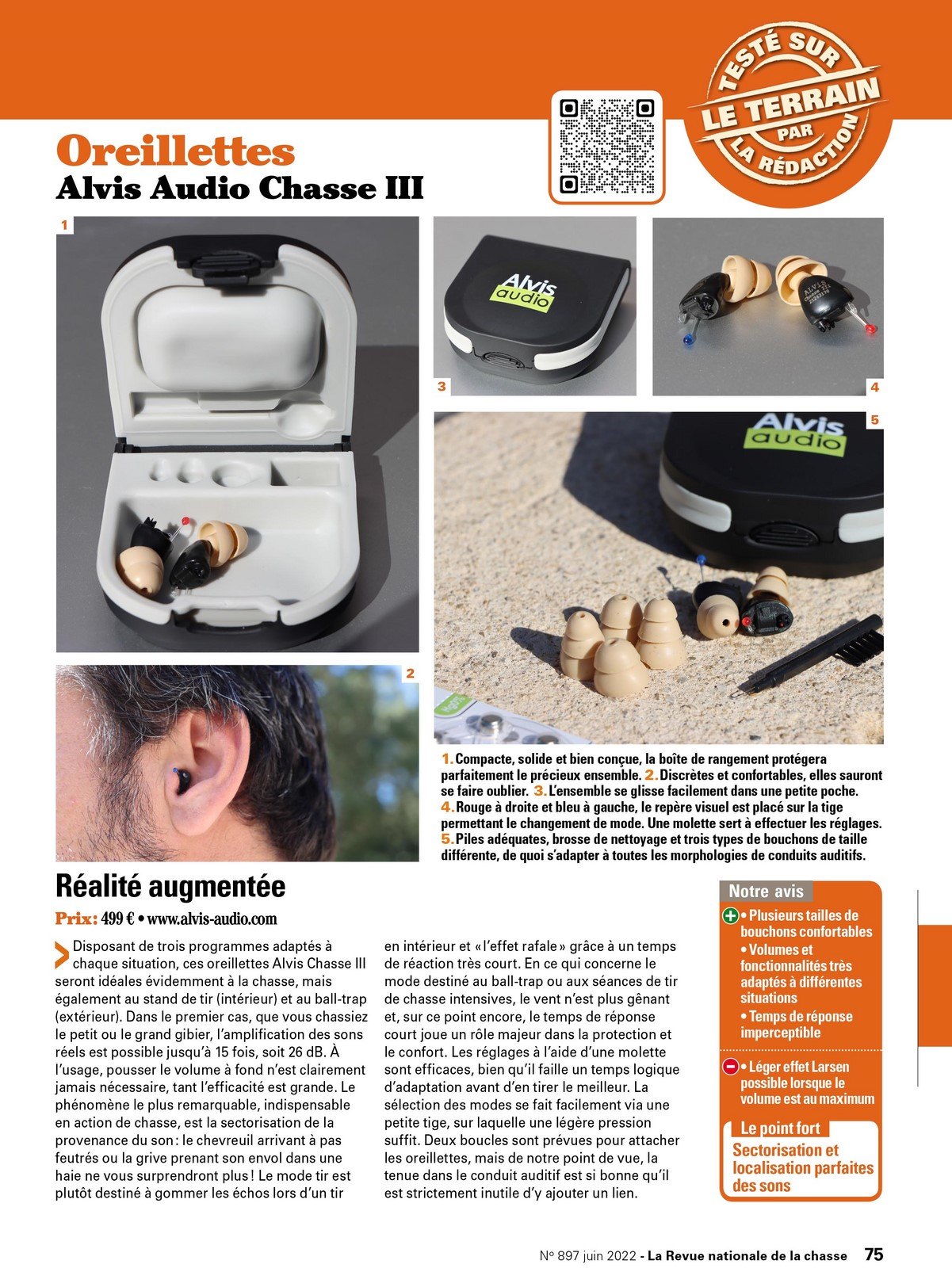 2 Oreillettes électroniques pour la chasse : optimisent les sons utiles au chasseur ou au tireur, avec un contrôle de volume automatique (AGCO) pour ne pas endommager l'audition, les oreillettes numériques ALVIS :