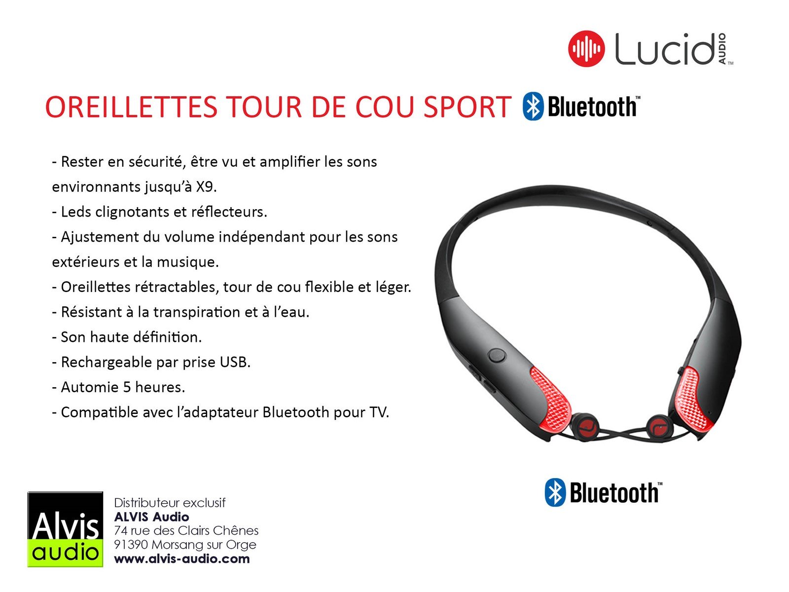 Oreillettes tour de cou Bluetooth avec Flash lumineux Lucid Audio