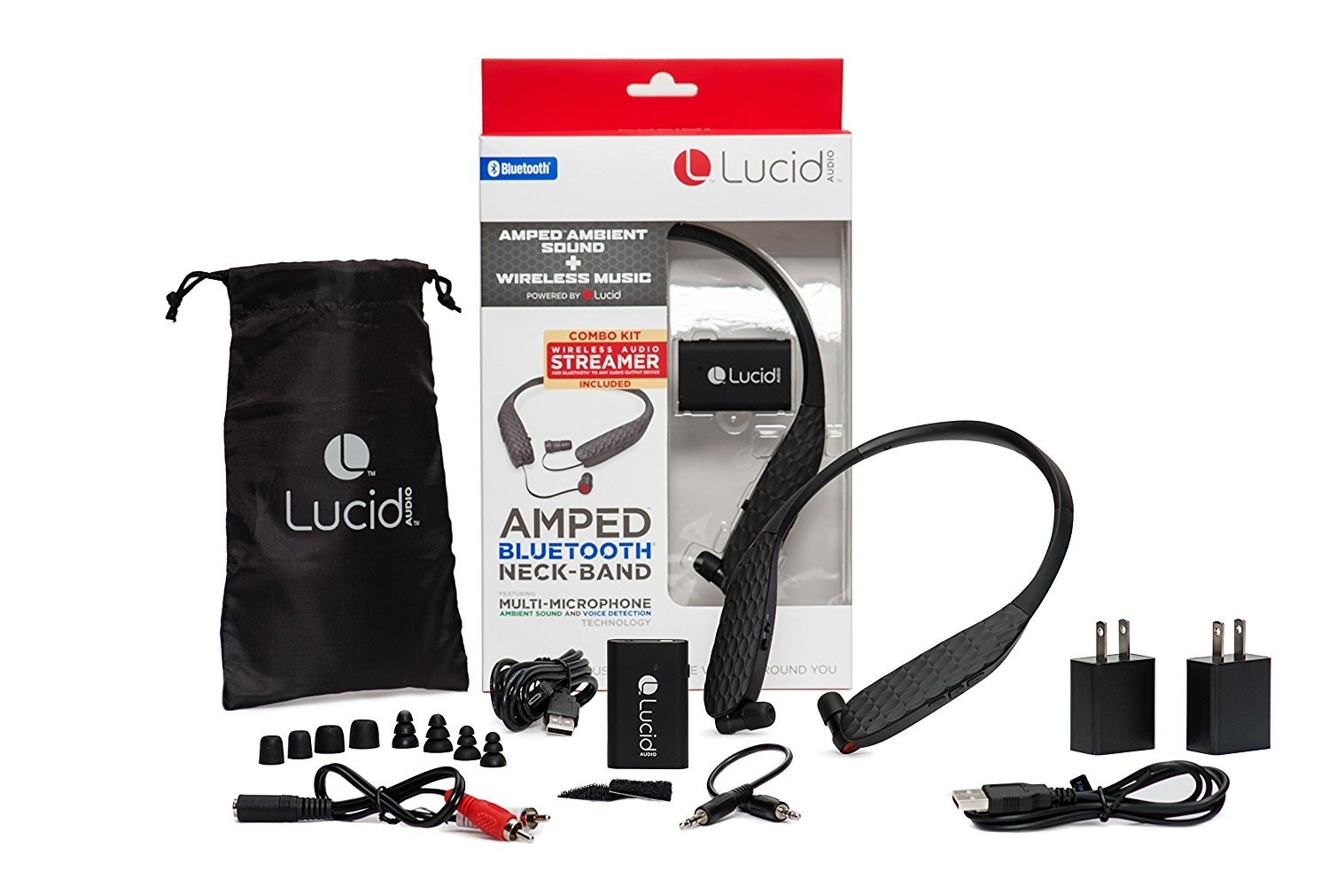 Oreillettes tour de cou Bluetooth rechargeables avec Plug émetteur Bluetooth - Lucid Audio