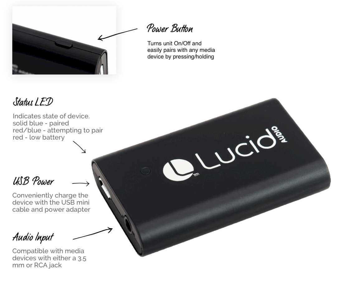 Brancher le Plug Bluetooth sur la télévision pour transformer vos oreillettes Lucid Audio en récepteur amplifié pour écouter au niveau sonore souhaité.